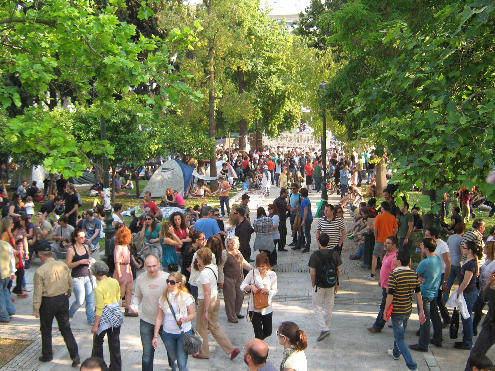 The momentum is growing and things are getting more organised. Solid outcomes are still thin on the ground, but then reaching consensus with 150 000 people of all political stripes was never going to be easy. Syntagma remains a non-partisan space and there is collective agreement to keep it that way (all-out scuffles between protesters and those who have attempted to erect banners or distribute propaganda have occasionally broken out). There is a strong feeling that all the partisan politics of Greece has contributed to – rather than eased – the mess that the country is in.
